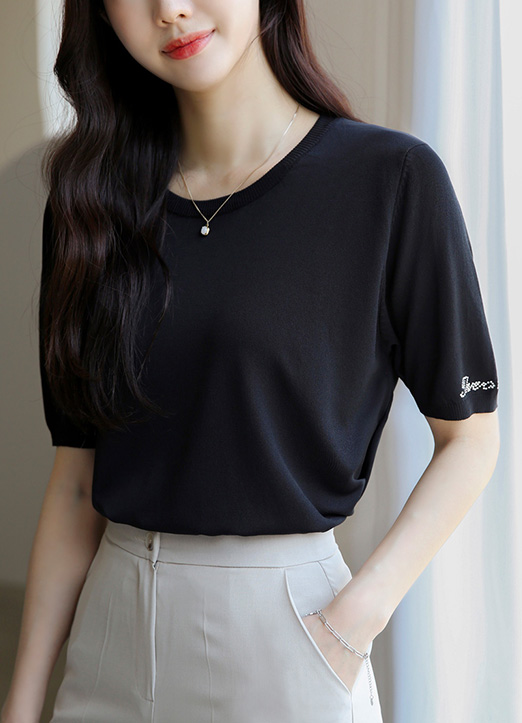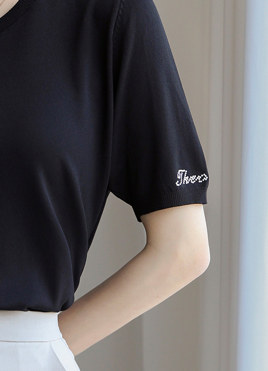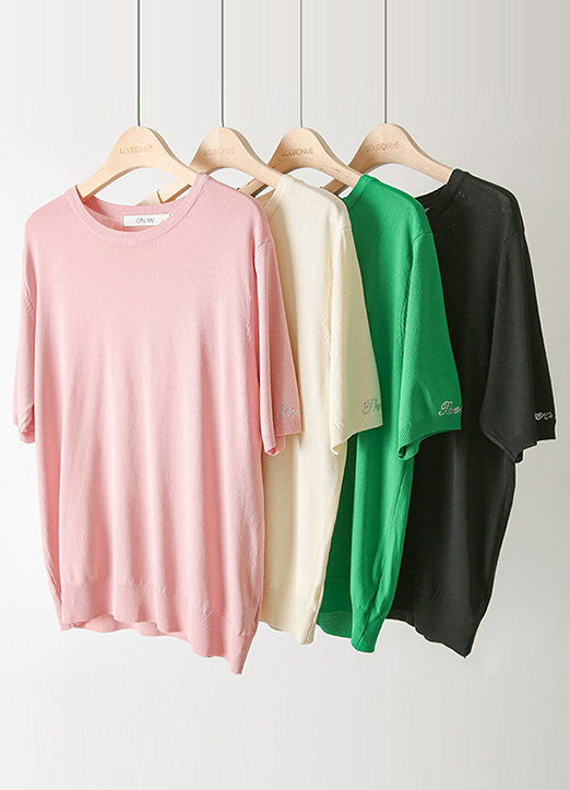 [Louis Angel] (4 Colors) Silver Lettering Short Sleeve Basic Knit Top