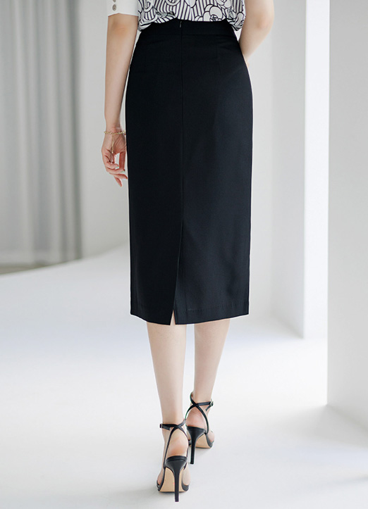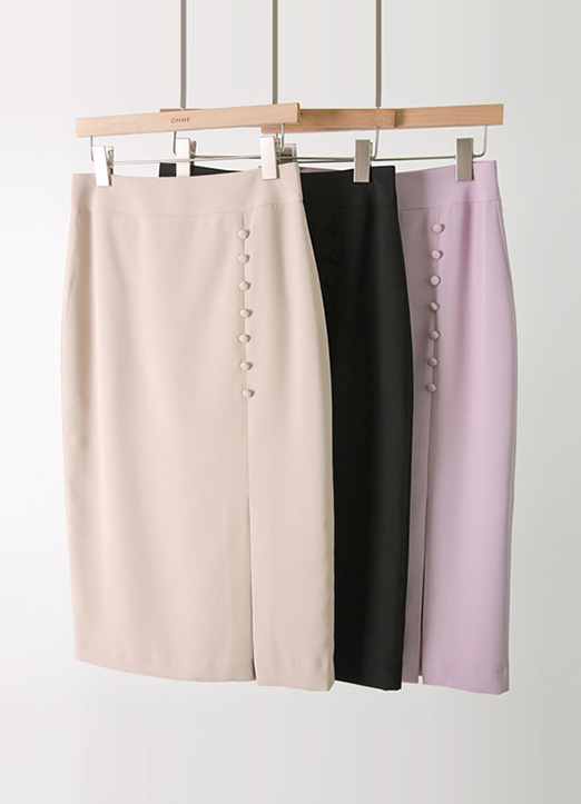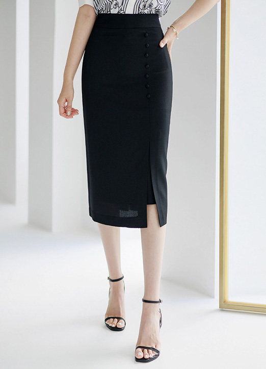 Button Detail Front Side Slit H-Line Midi Skirt