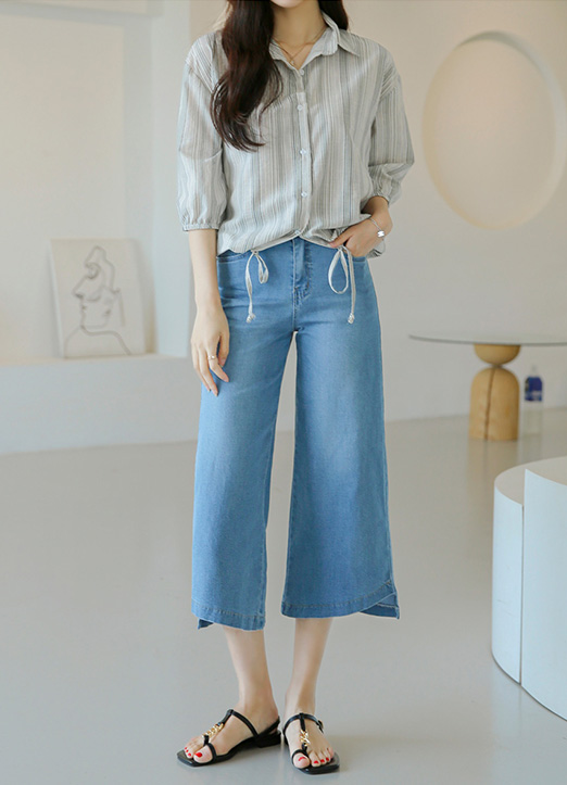 쫀득한 쿨 원단으로 편안하게 착용되는 7부 데님 팬츠에요 :)