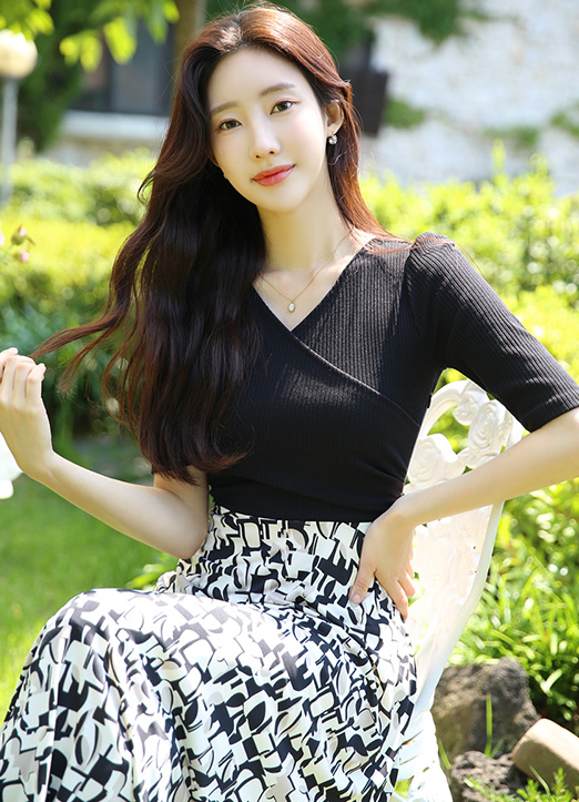 깔끔한 골지 랩 디자인에 화사한 패턴을 레이어드하여