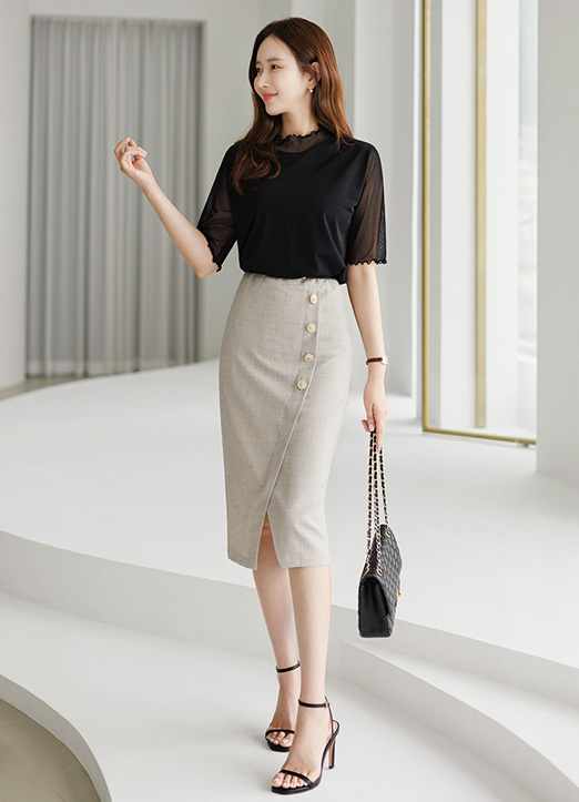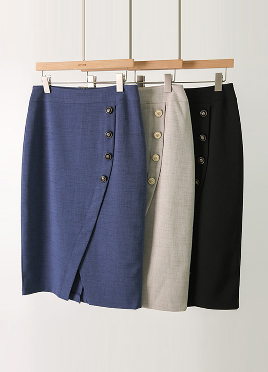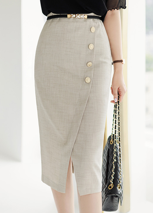 Diagonal Gold Button Wrap Design H-Line Skirt