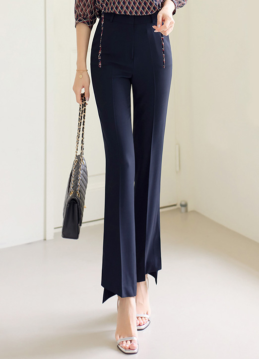 Unbalanced Hem Stretch Slim Boot-Cut Slacks