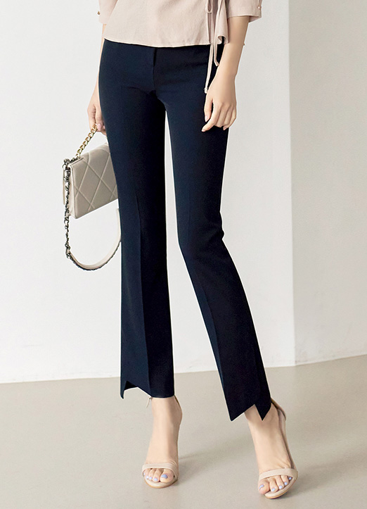 Unbalanced Hem Stretch Slim Boot-Cut Slacks