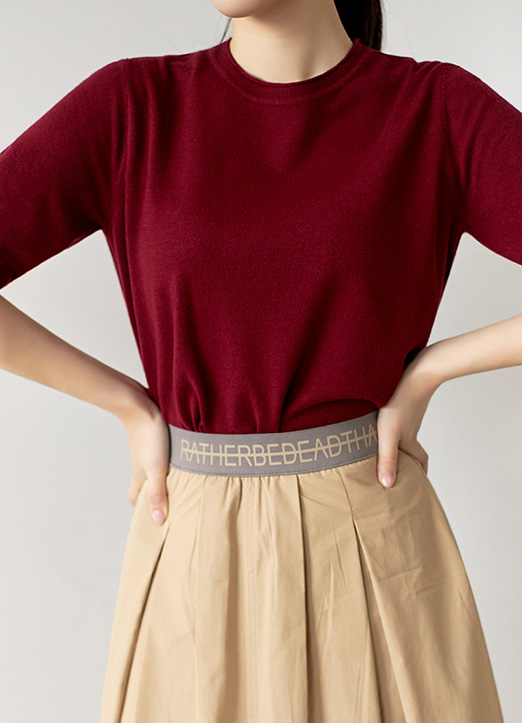 (11 Colors) Soft Touch Round Neck Side Slit Knit Top