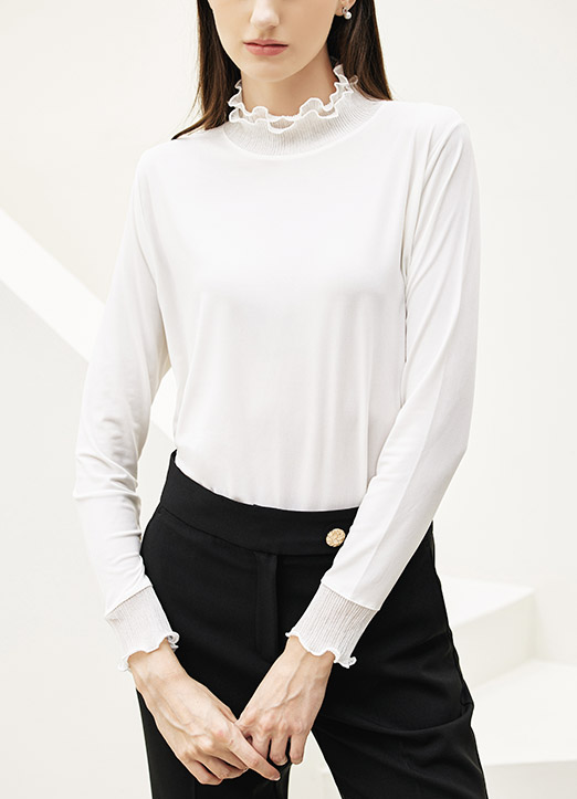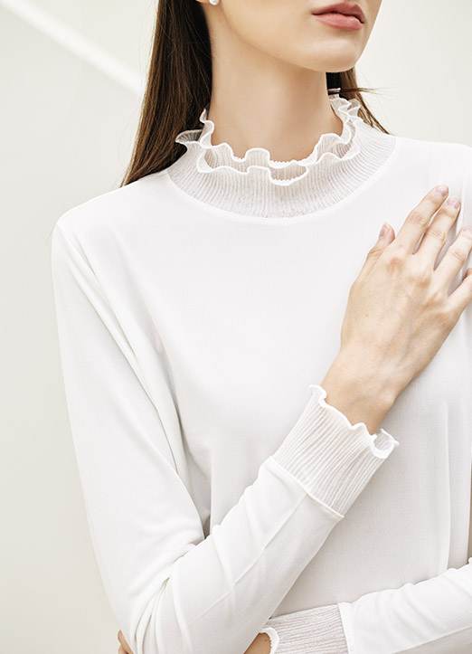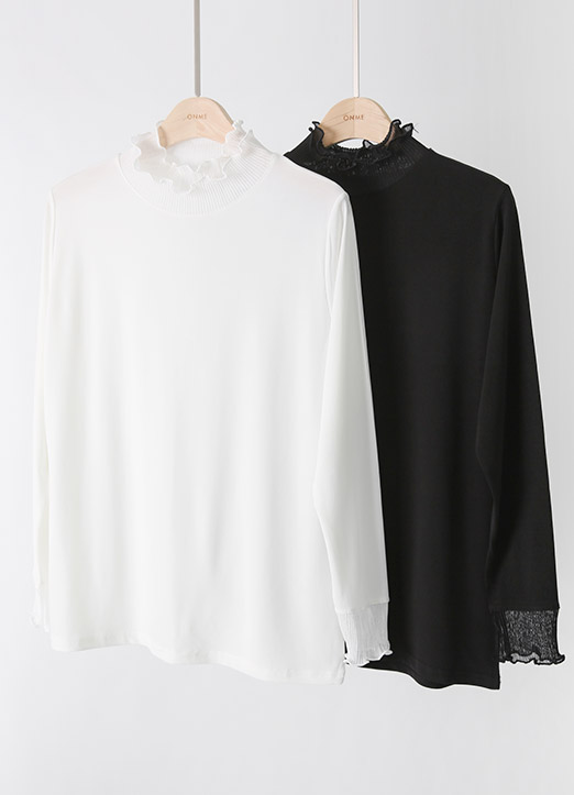 Double Layered Curly Frill Mock Neck Top