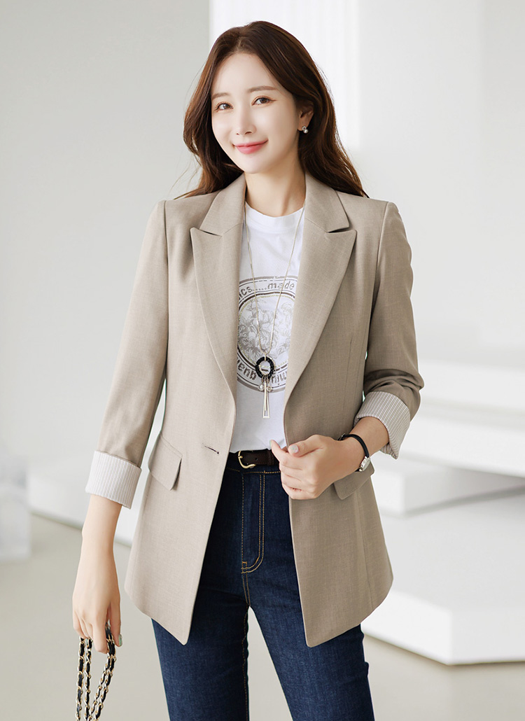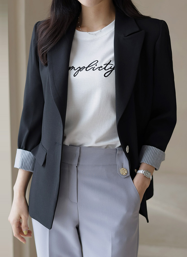 [Louis Angel] Contrast Roll-Up Sleeve One Button Tailored Jacket