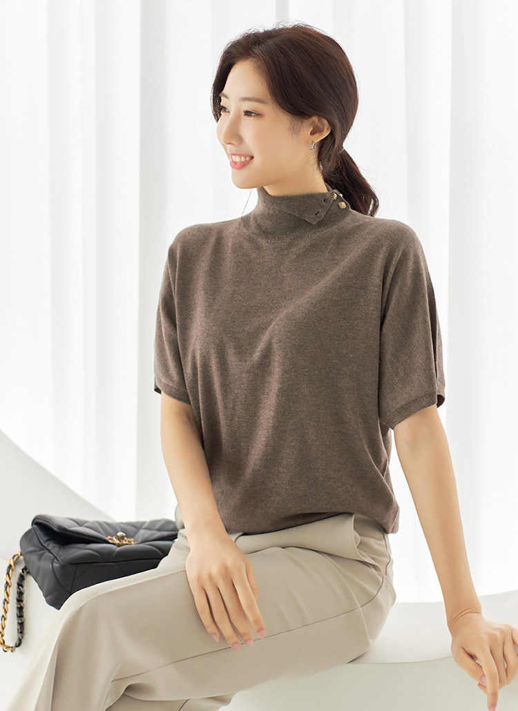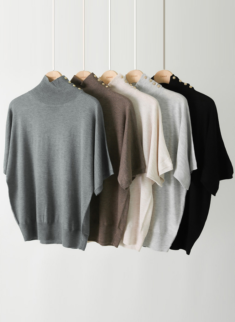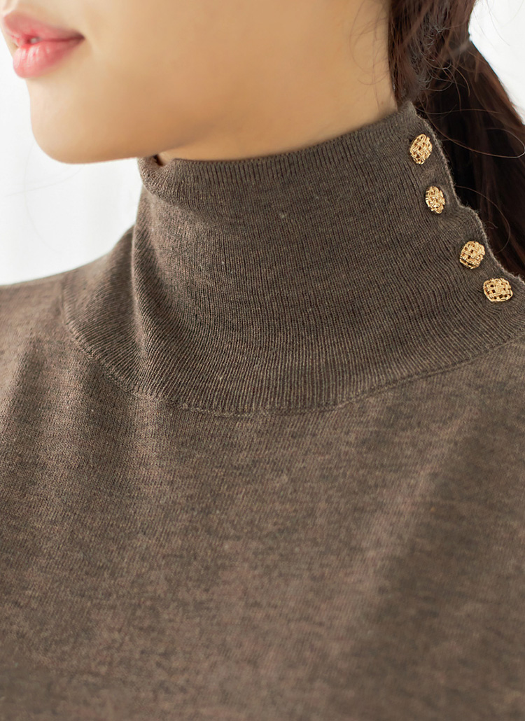 (5 Colors) Soft Touch Gold-Buttoned Turtleneck Knit Top