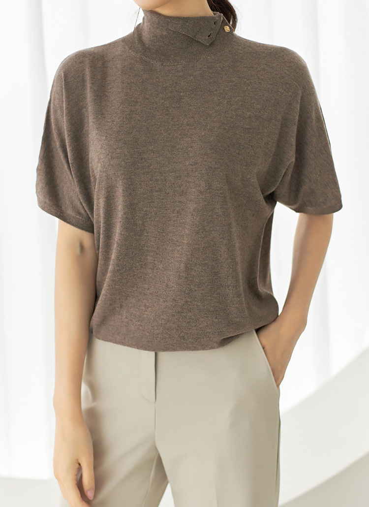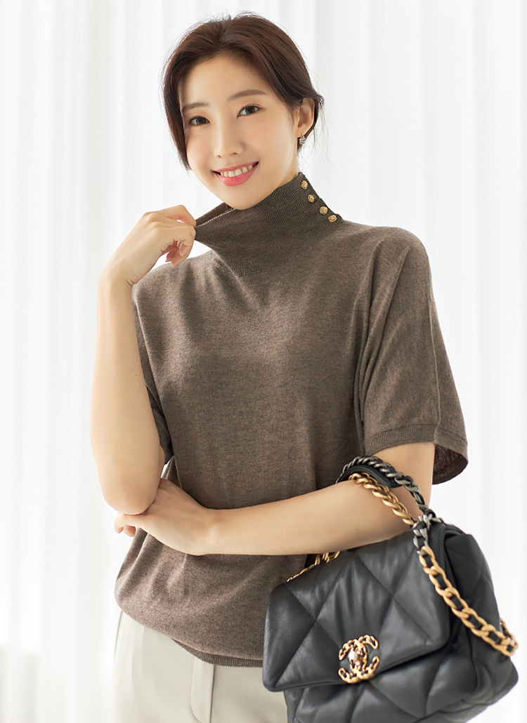 (5 Colors) Soft Touch Gold-Buttoned Turtleneck Knit Top