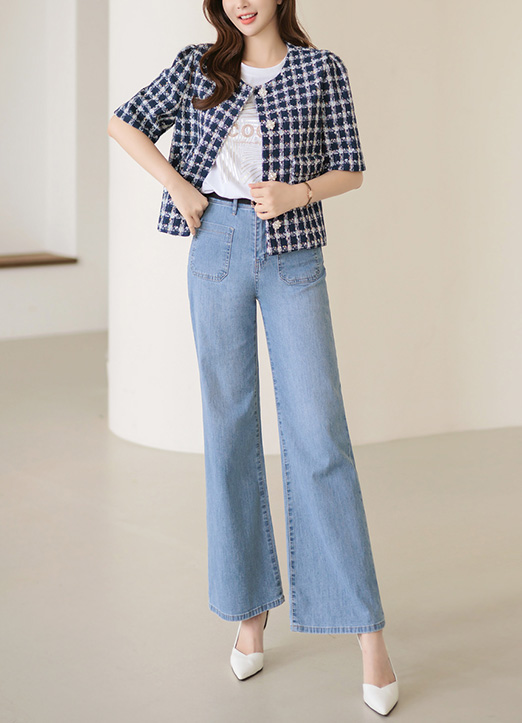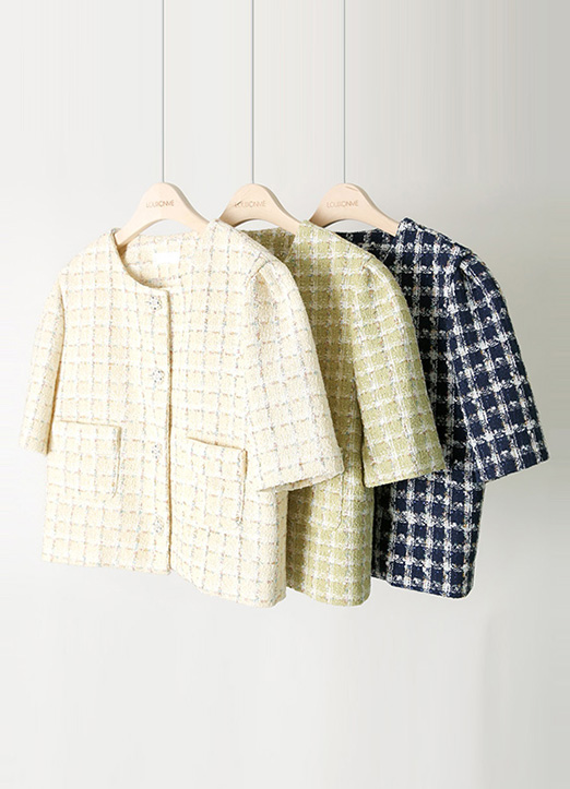 진주 쥬얼리버튼에 트위드 소재로 화사하게 밝혀주며