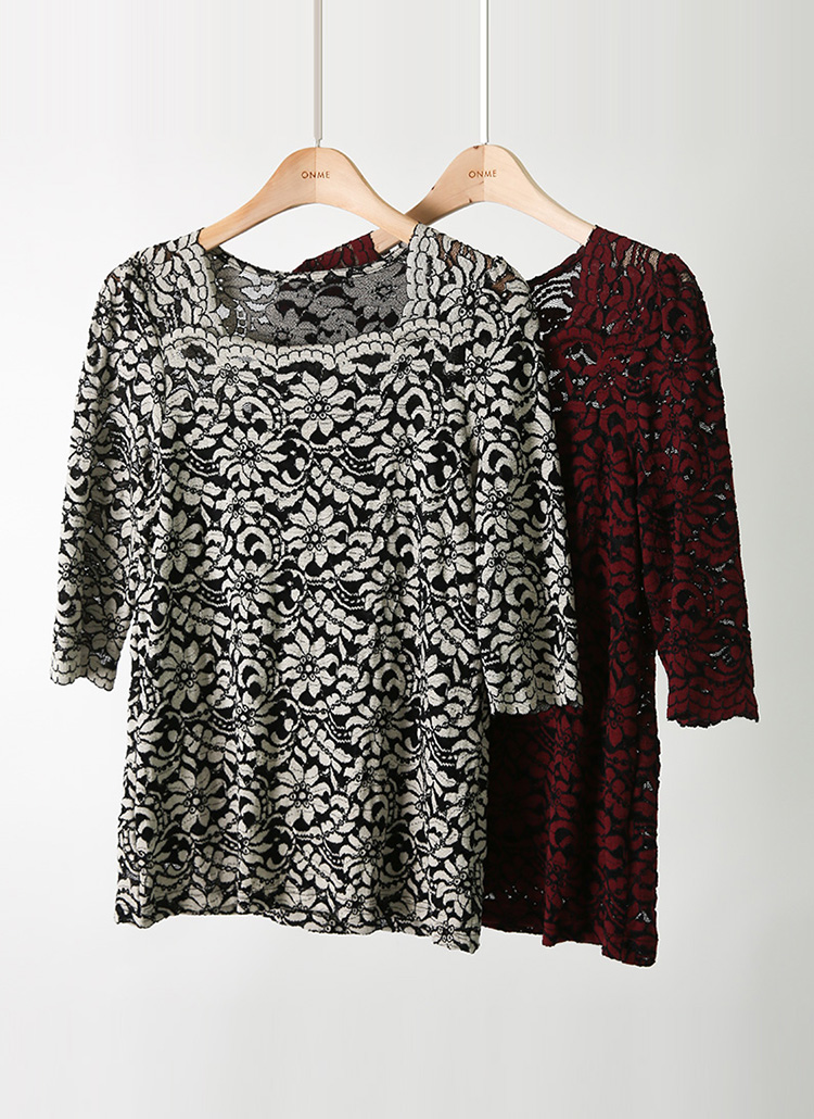 부드럽고 편안하게 착용되는 레이스 블라우스 티에요