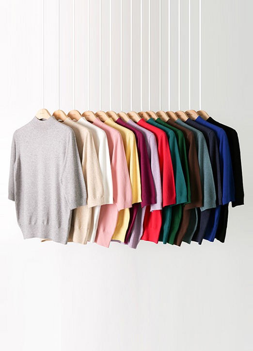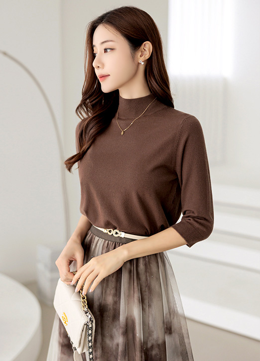 (15 Colors) Soft Touch Mock-Neck Half Sleeve Knit Top