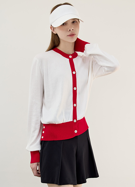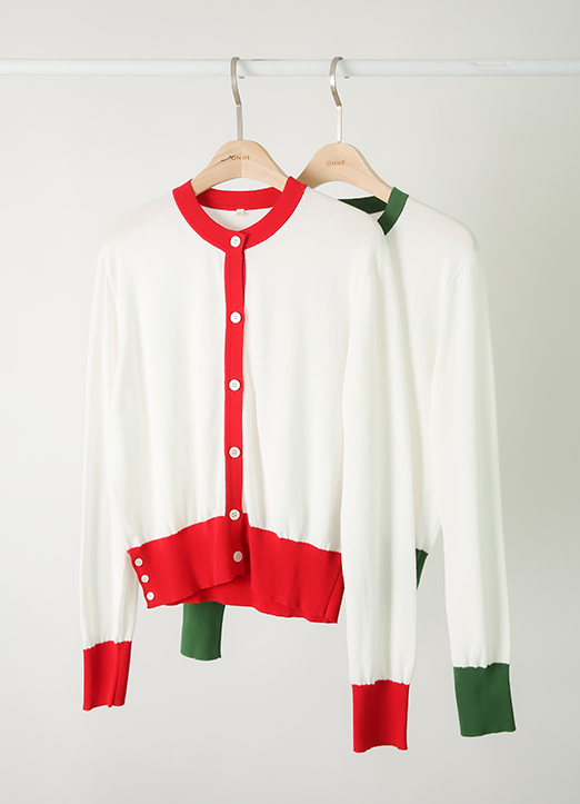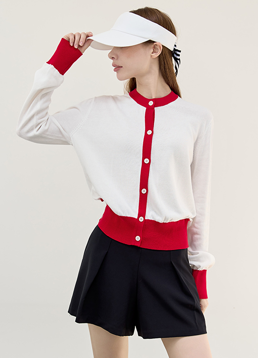 [QoG] Contrast Trim Round-Neck Knit Cardigan
