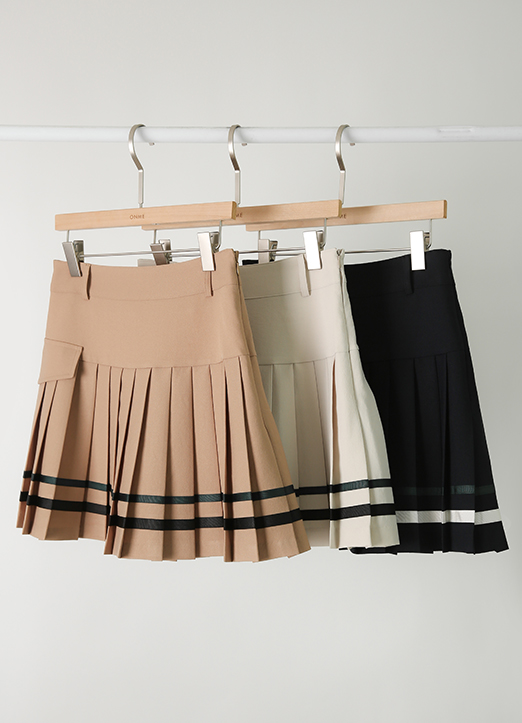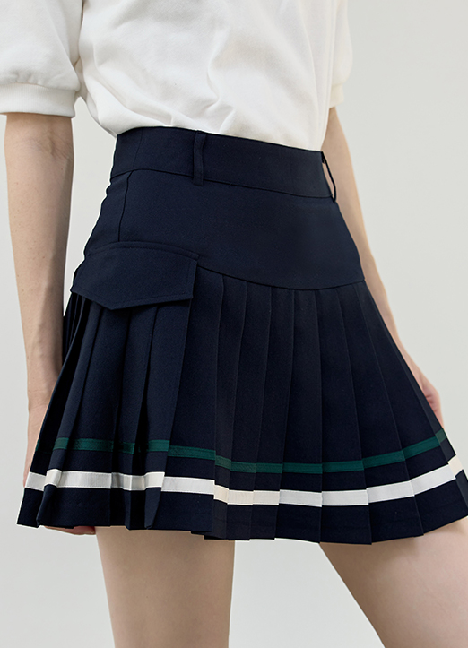 [QoG] Contrast Line Pleats Skirt w/ Inner Shorts