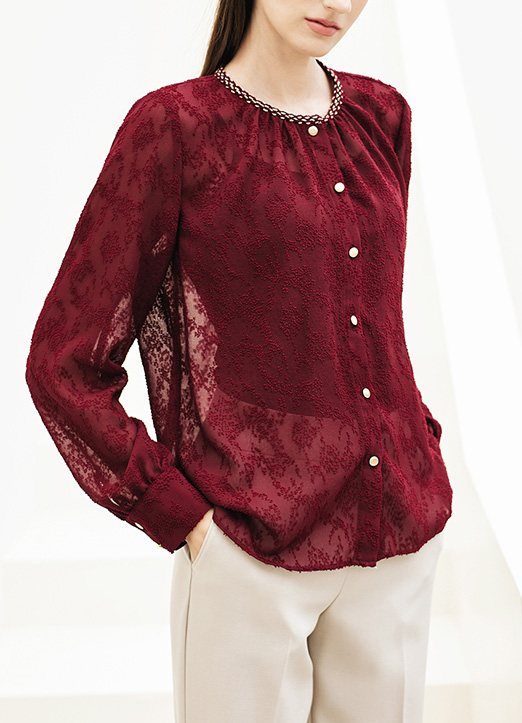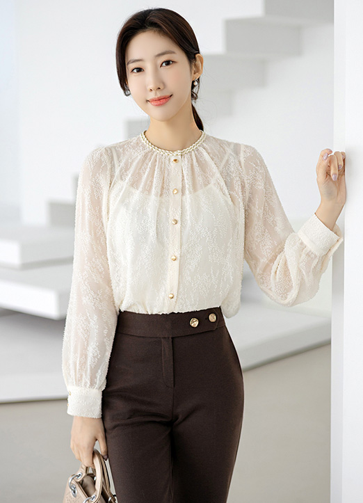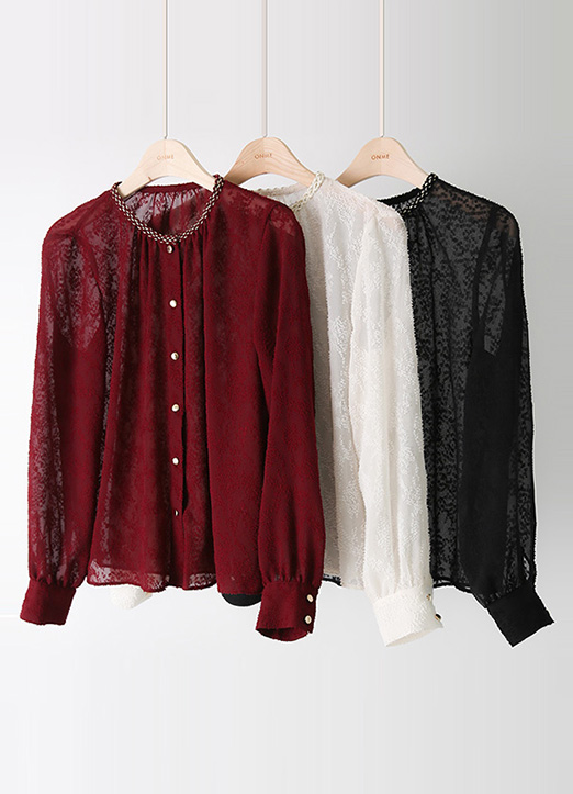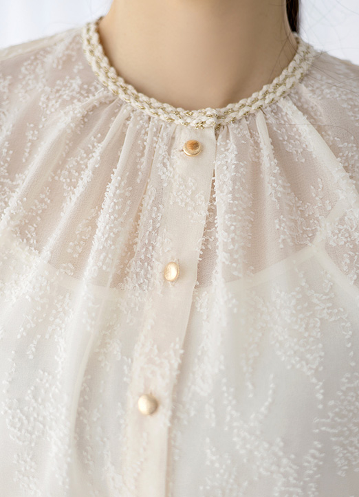 [LouisAngel] Braided Round Neck Dot Jacquard Sheer Blouse