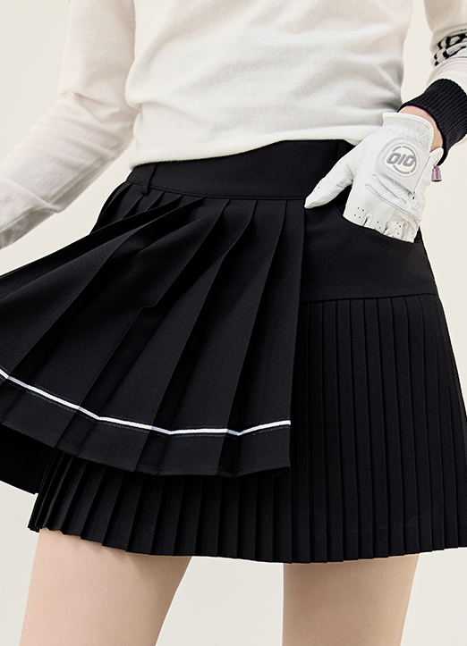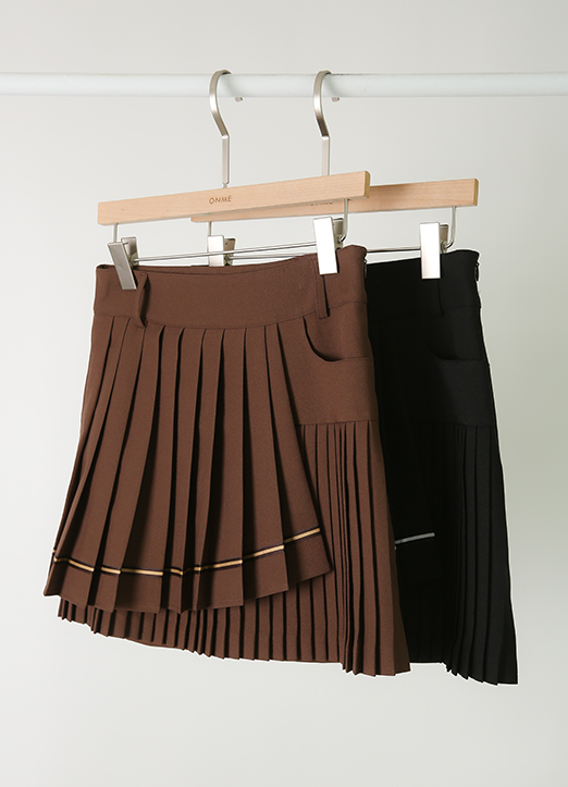 [QoG] Gold Trim Unbalanced Front Pleated Skirt