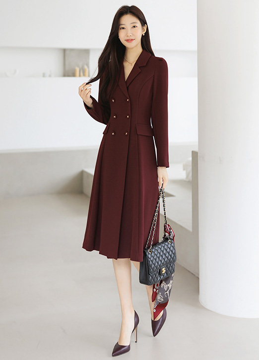 깔끔한 테일러드 카라에 더블 버튼 매치로