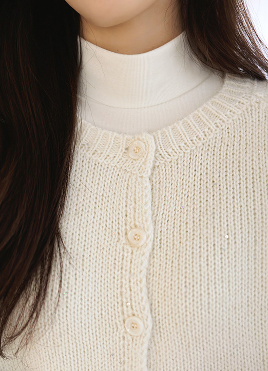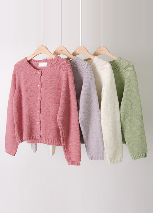 (4 Colors) Wool Blended Sequin Raglan Knit Cardigan