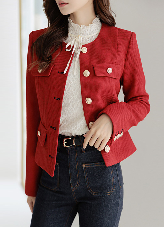 Collarless Bold Gold Button Point Tweed Jacket