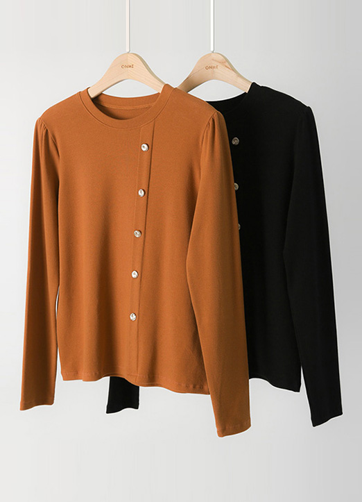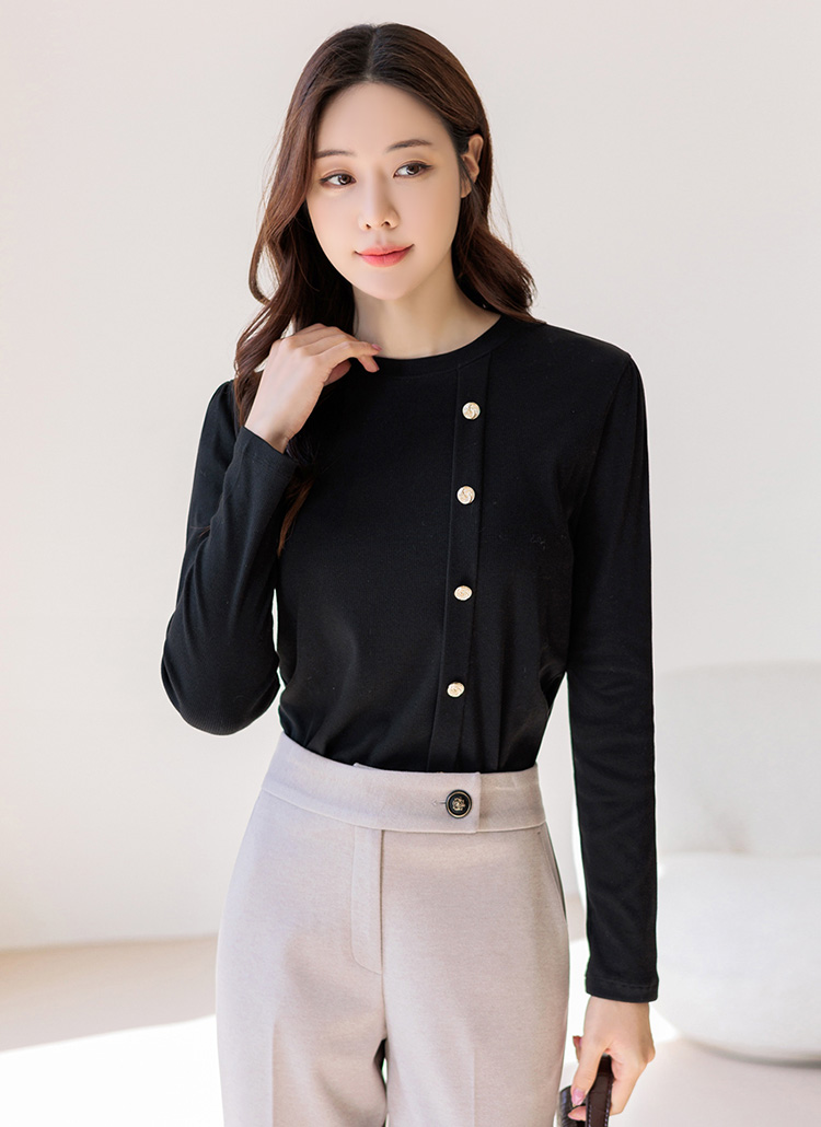 [Louis Angel] Gold Button Detail Shirring Sleeve Ribbed Top