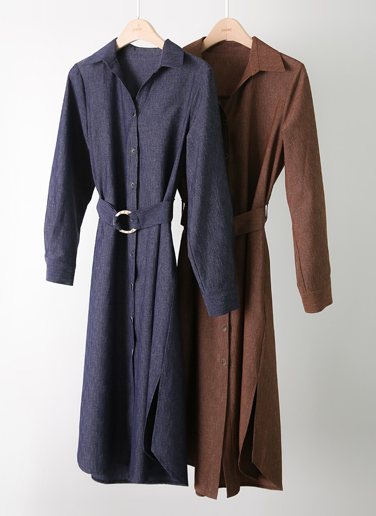O-Ring Self Belted Shirt Dress