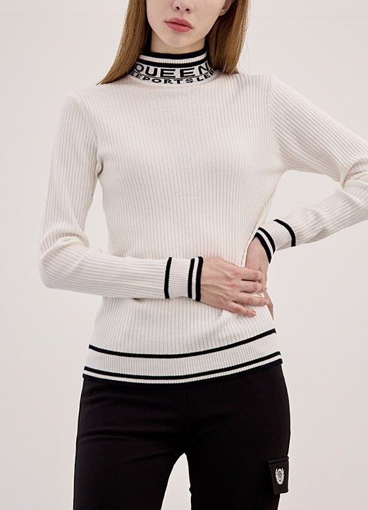 [QoG] Contrast Trim Lettering Mock Neck Knit Top