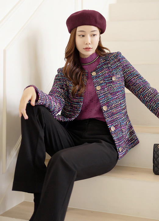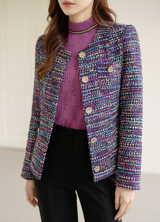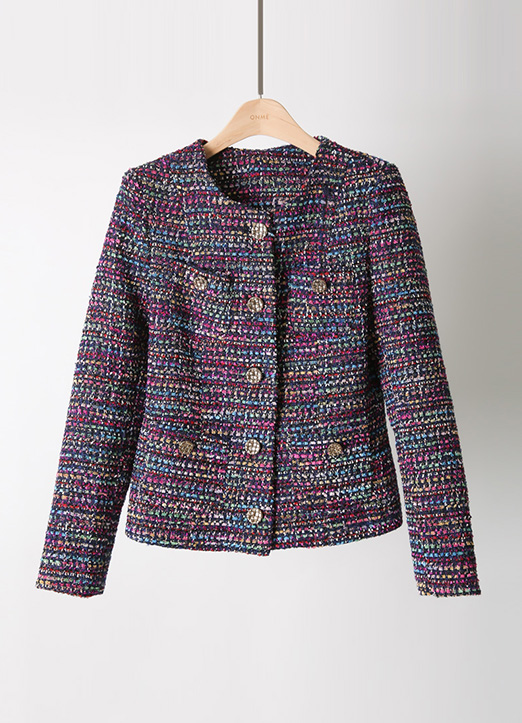 화사하고 매력적인 무드가 돋보이는 멀티 트위드 자켓이에요