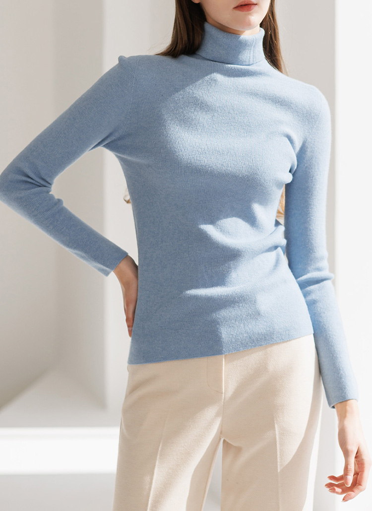 (5 Colors) Slim Ribbed Turtleneck Knit Top