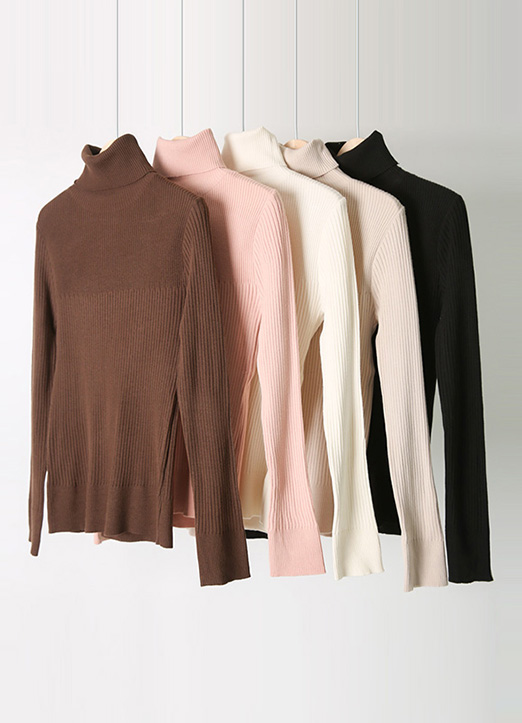 (5 Colors) Basic Turtleneck Slim Ribbed Knit Top