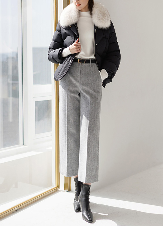 따스하고 포근하게 착용되는 소재의 헤링본 원단으로