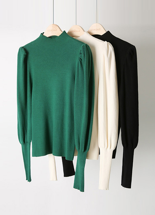 Mock Neck Feminine Voluminous Sleeve Knit Top