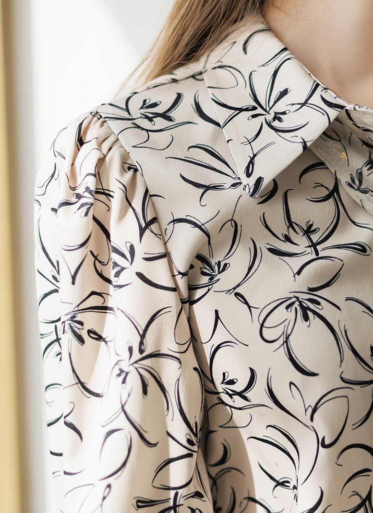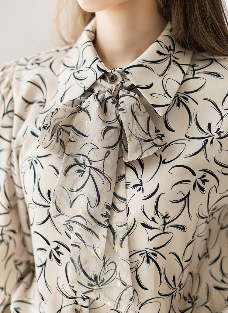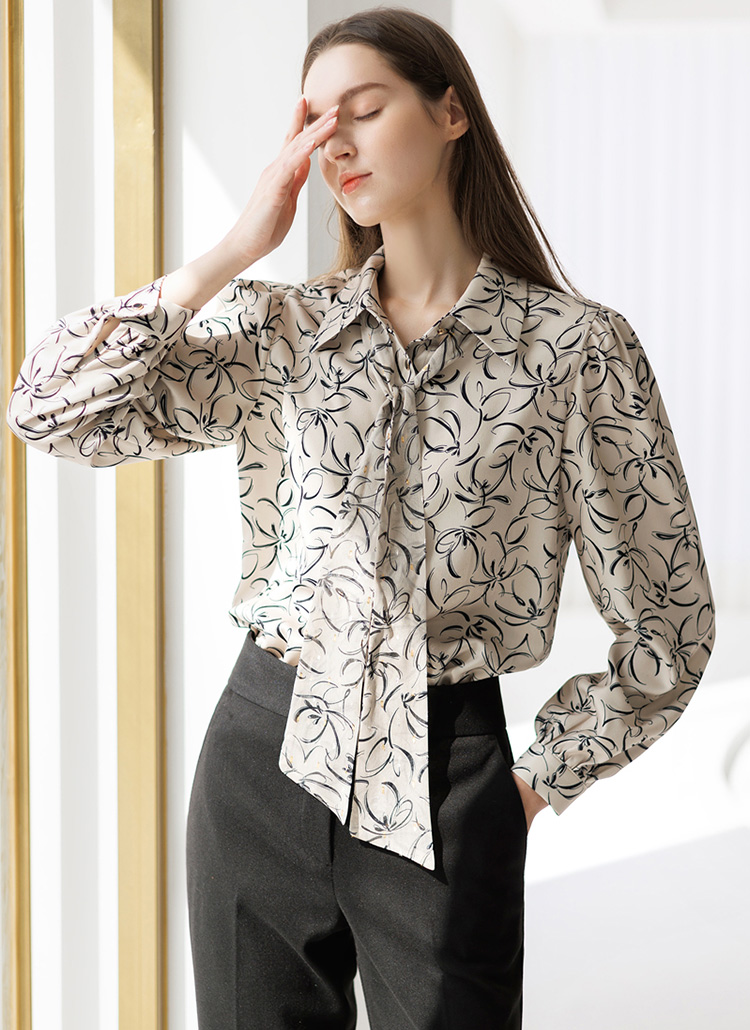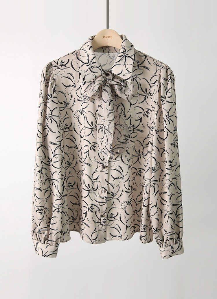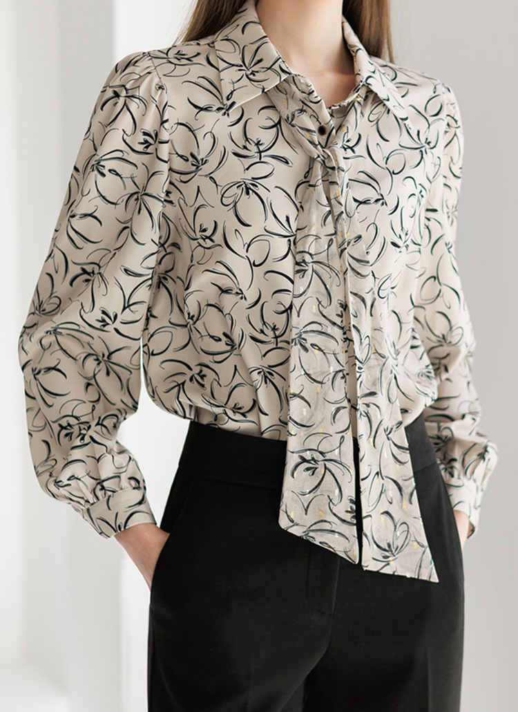 [LouisAngel] Floral Print Satin Blouse w/ Tie