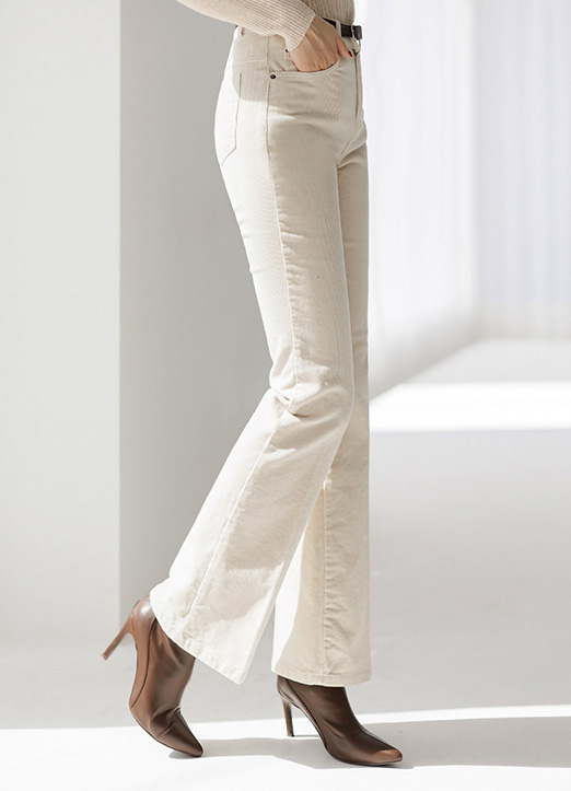 Mid Rise 5-Pocket Semi Boot-Cut Corduroy Pants