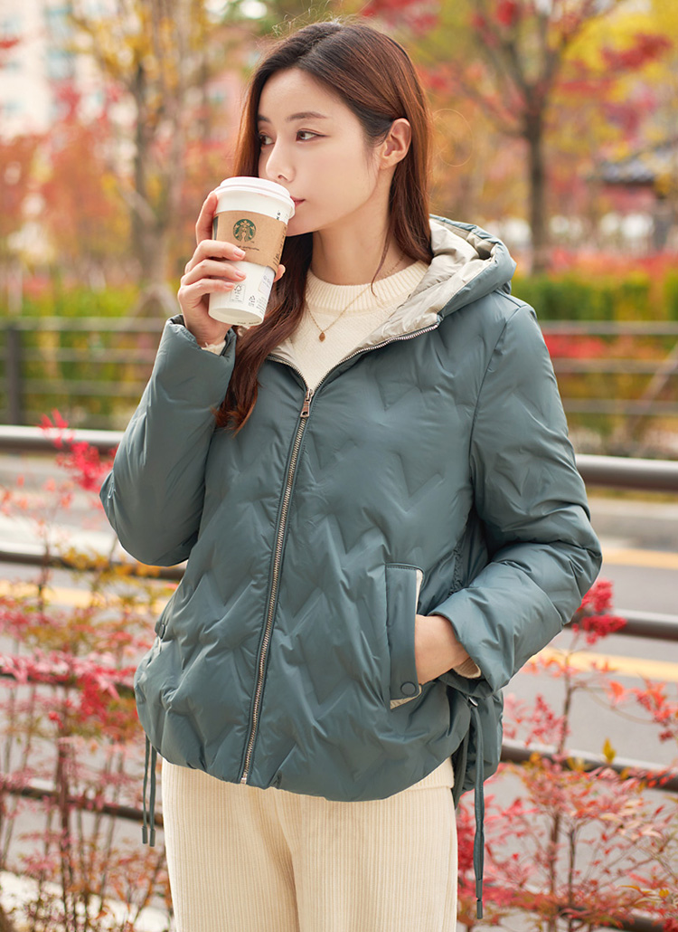 Side Drawstring Hooded Duck Down Padded Jacket