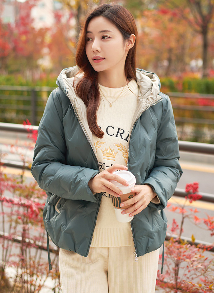 덕다운 충전재로 가벼우면서 따뜻하게 착용되며