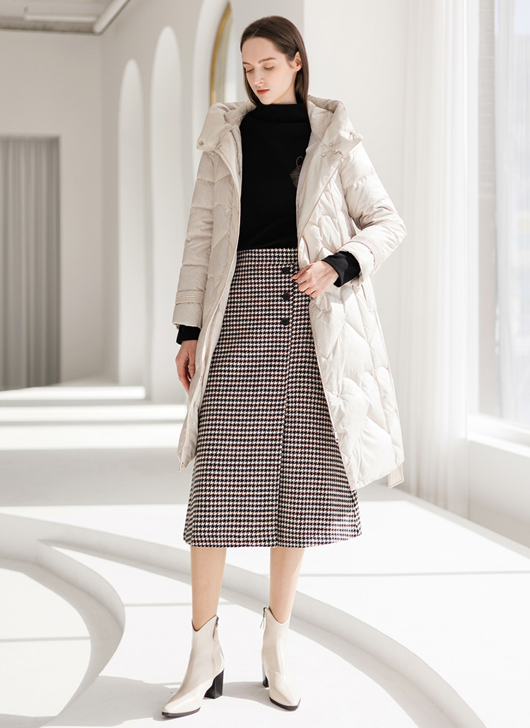 아래로 퍼지는 라인감에 무릎 아래로 오는 롱한 길이감이