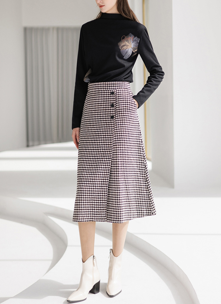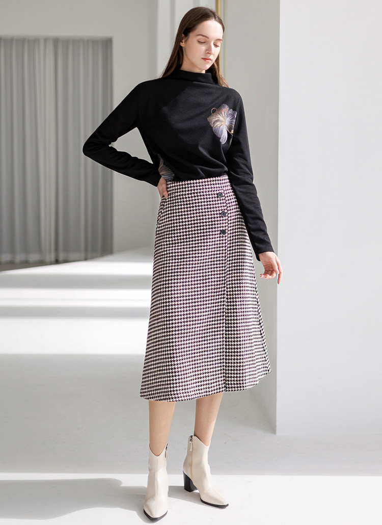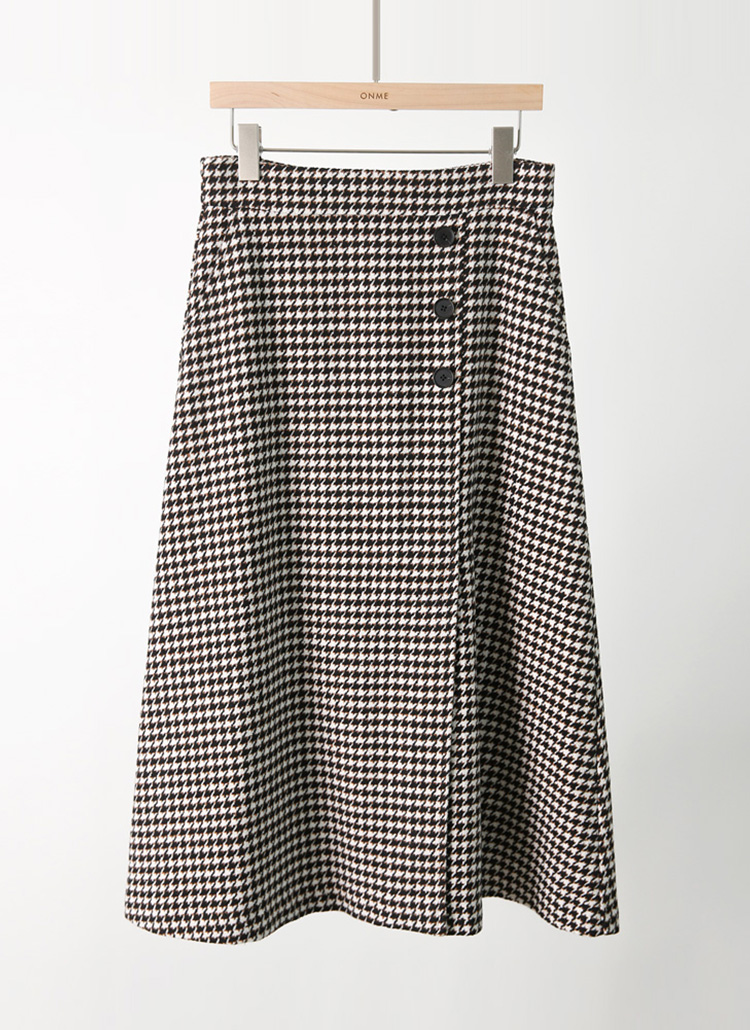 [LouisAngel] Wool Like Wrap Design Houndstooth A-Line Skirt