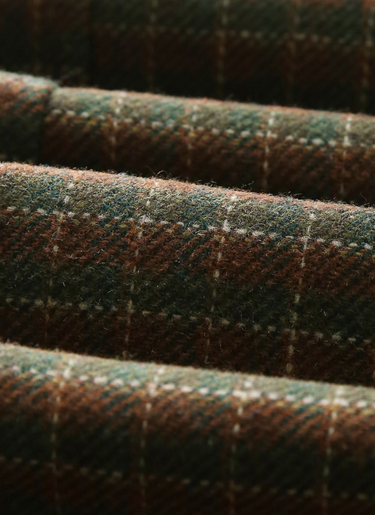 카멜과 카키 컬러가 블렌딩된 체크 패턴으로