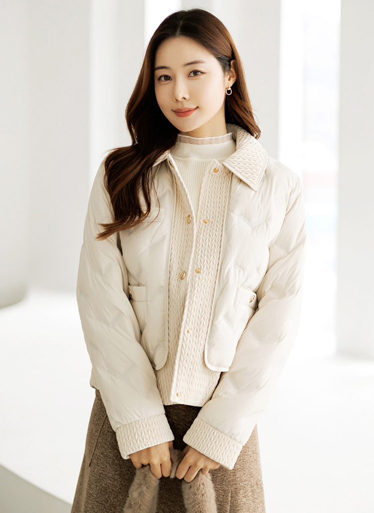 가볍고 따스하게 착용되는 준경량 덕다운 패딩 점퍼에요