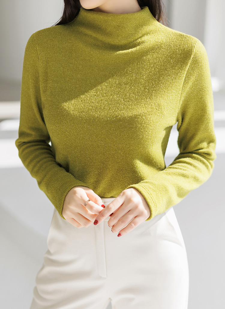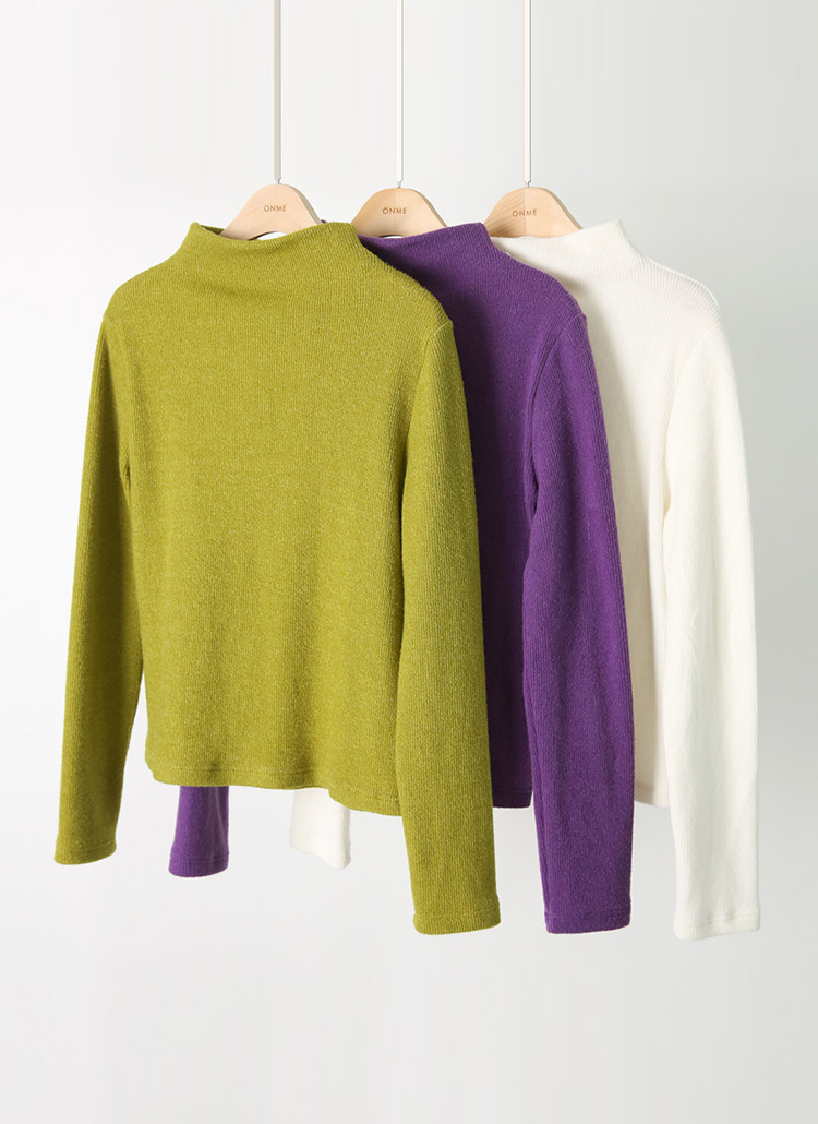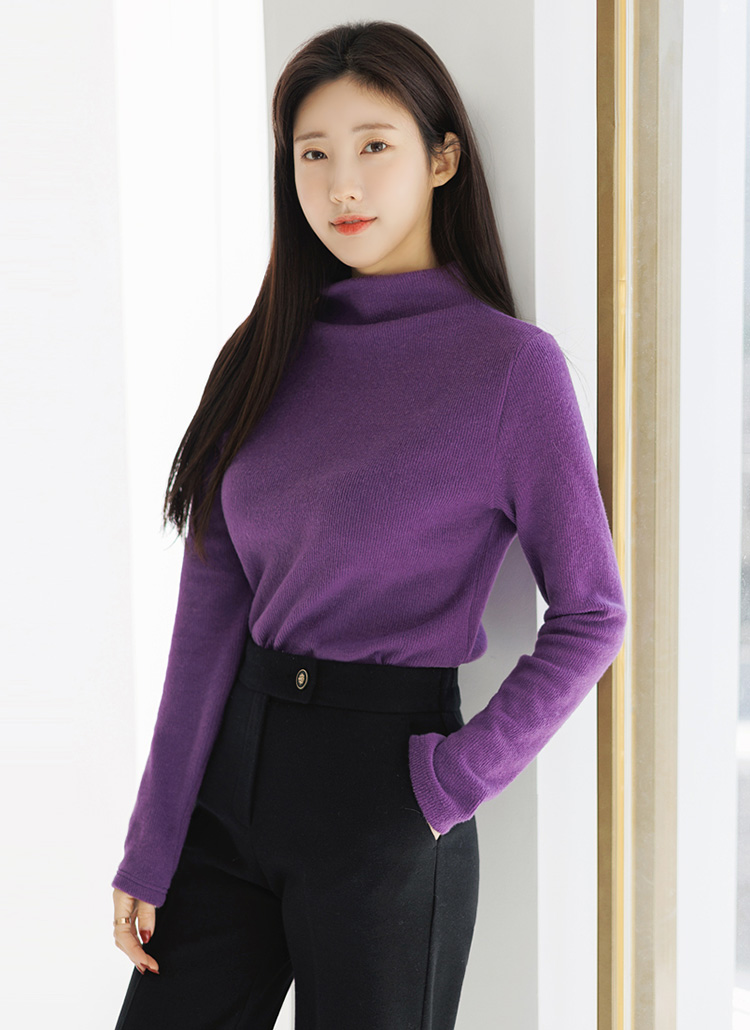 [LouisAngel] Soft Warm Mock Neck Ribbed Top