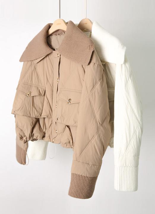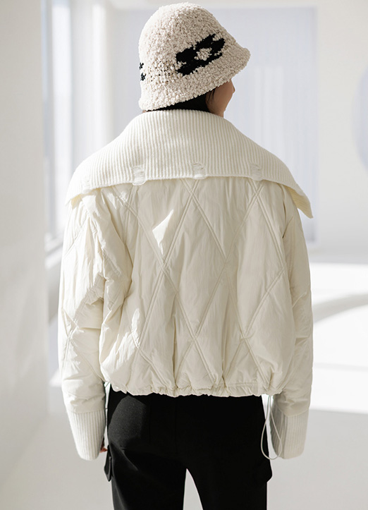 Knitted Sailor Collar Drawstring Hem Down Padded Jacket