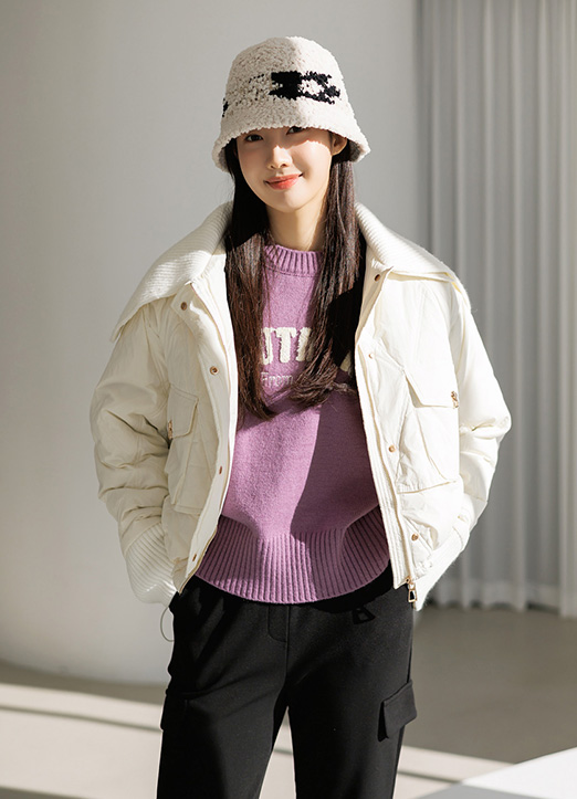 덕다운 소재로 따스하게 착용되는 패딩 점퍼에요 :)