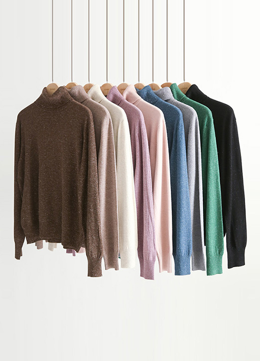 (9 Colors) Comfy Metallic Turtleneck Knit Top