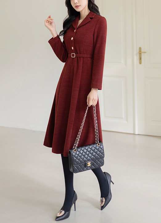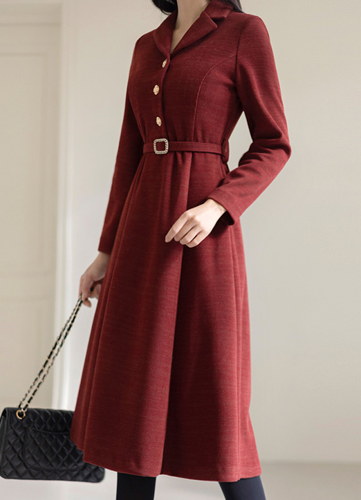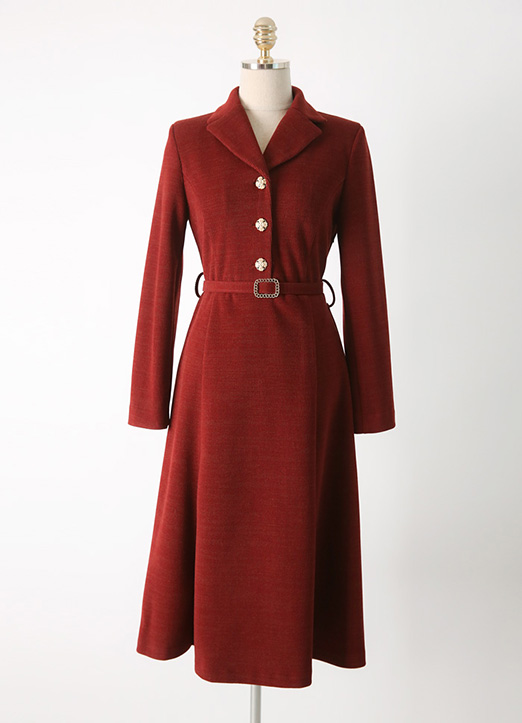 [LouisAngel] Jewel Button Collared Flare Dress w/ Belt