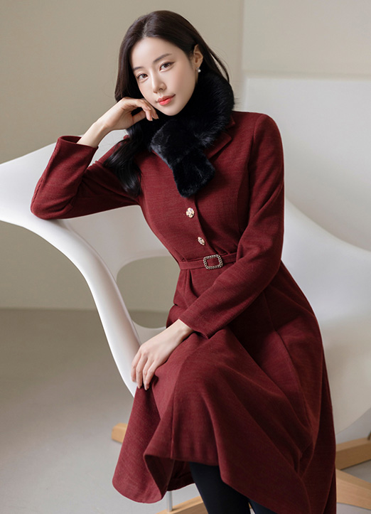 테일러드 카라와 제원단의 벨트가 SET로 구성된 디자인으로