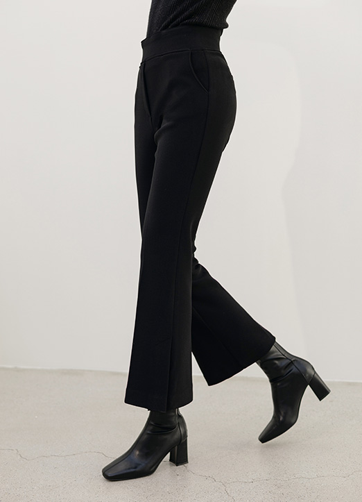 [The Onme] Wide Elastic Waistband Side Slit Brushed Slim Boot-cut Slacks