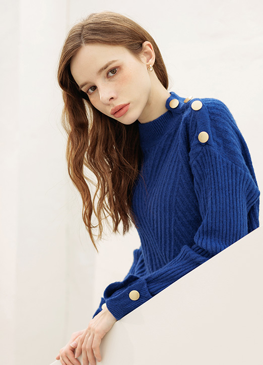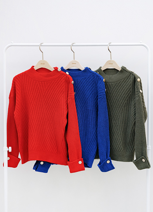 유니크한 사선골지짜임에 숄더라인 금장버튼이 포인트로