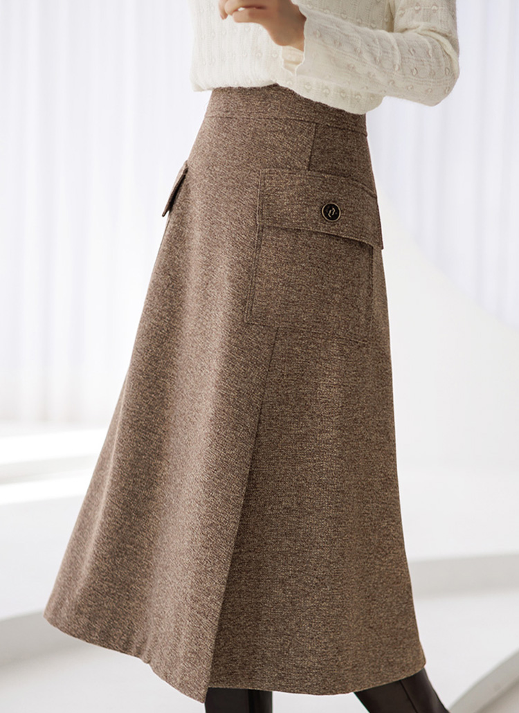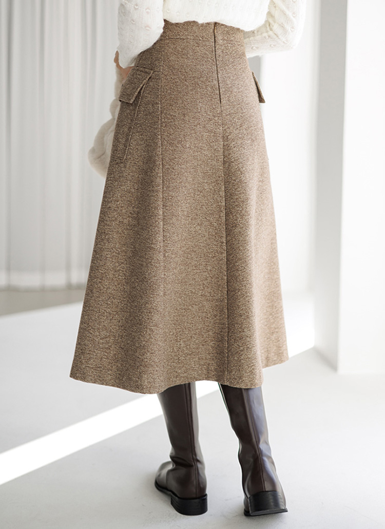 [LouisAngel] Wool Blended Side Big Pocket Front Slit Flare Skirt