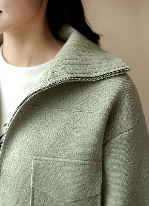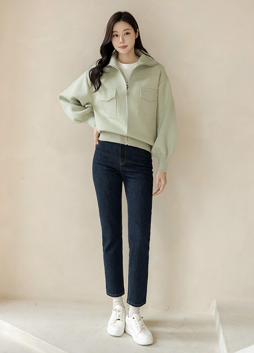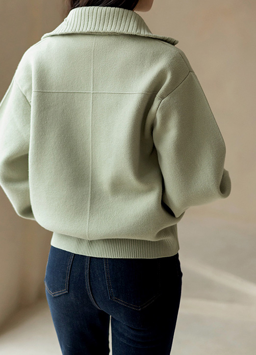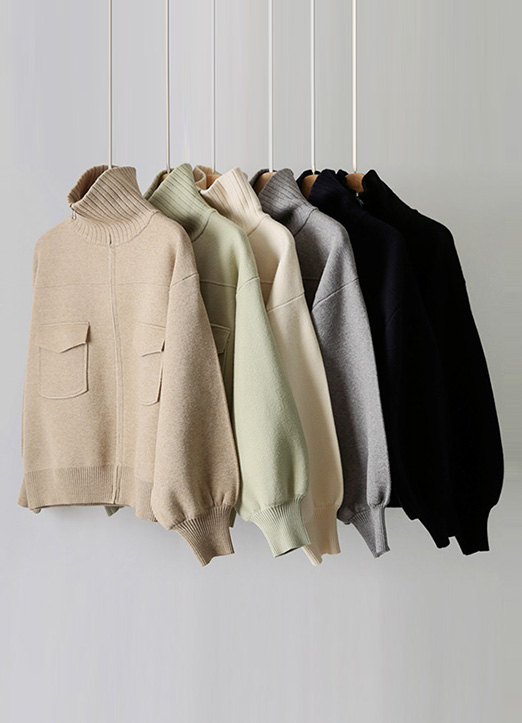(6 Colors) Ribbed Zip High Neck Voluminous Sleeve Knit Cardigan