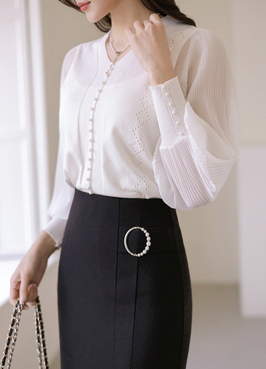 밑단에 트임대신 2단 플리츠를 연출해주면서