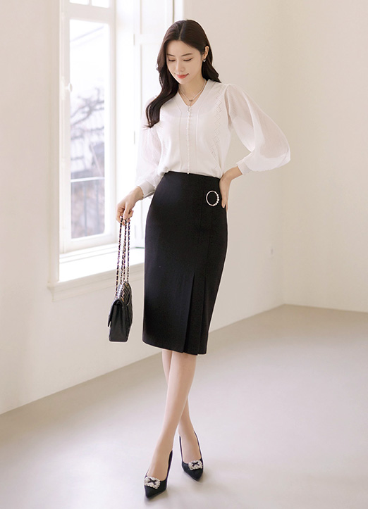 우아한 페미닌 무드를 선사하는 미디 스커트에요